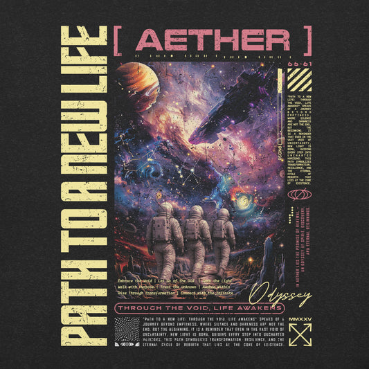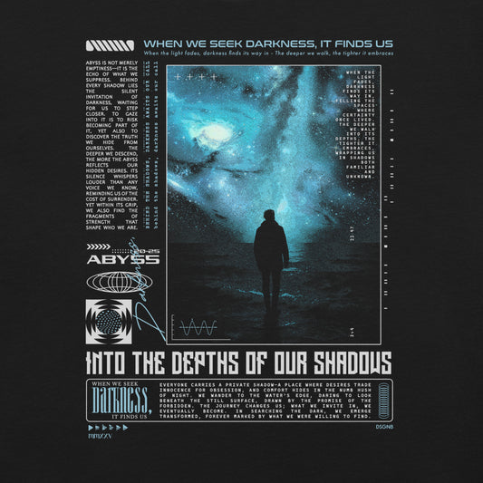 This shirt captures the promise of renewal—walking through the void where life awakens. Beyond emptiness and silence lies a beginning, where light is born guiding us into uncharted horizons. It symbolizes transformation, resilience, and the eternal cycle of rebirth at existence’s core.
