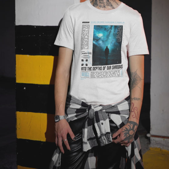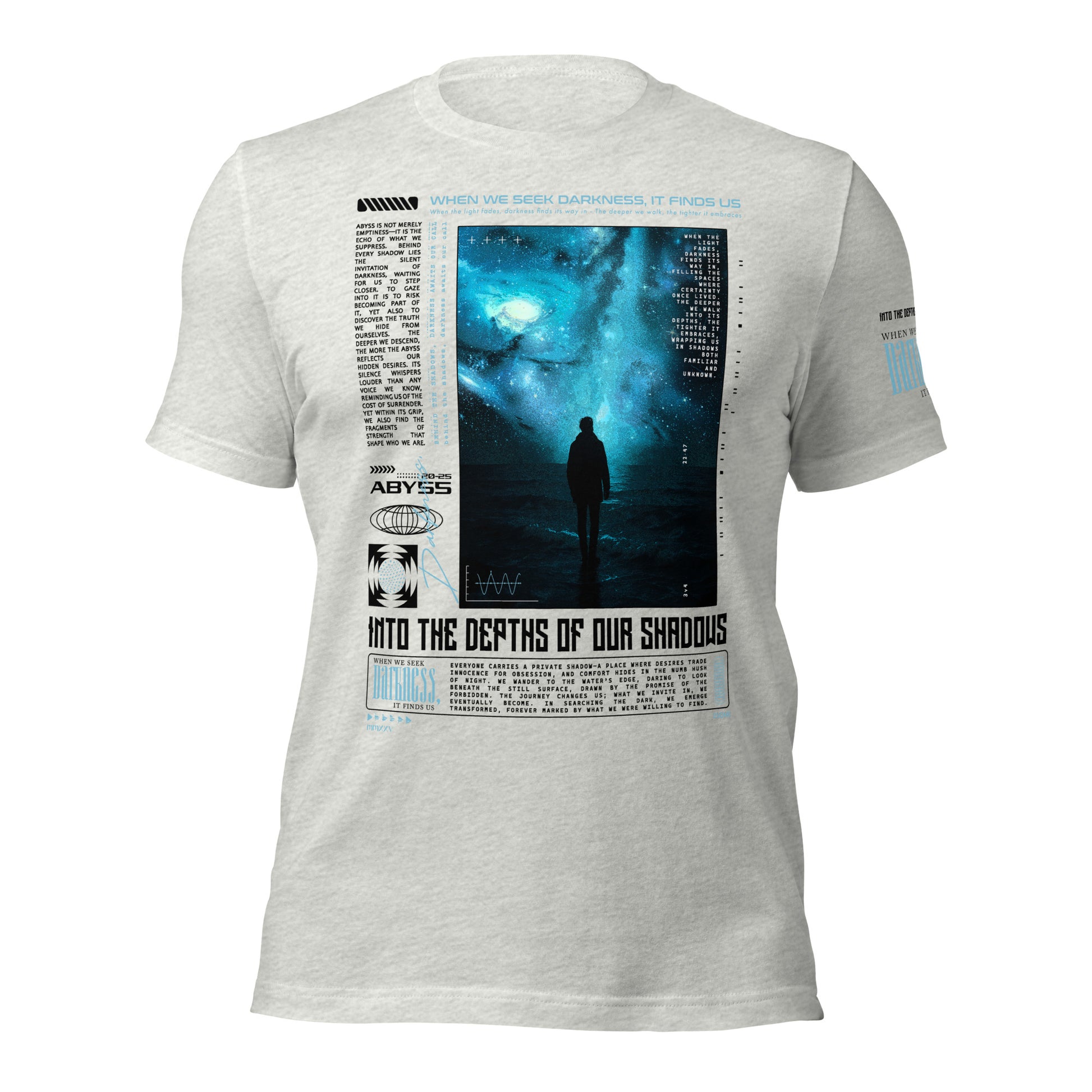 This tee explores the journey into the shadows of our minds—the abyss where truth hides and transformation begins. The design captures the deep dive into darkness not as emptiness, but a place where strength is forged and hidden desires surface. Perfect for anyone embracing mental health awareness, this shirt symbolizes the courage to seek and confront one's inner darkness to emerge stronger.