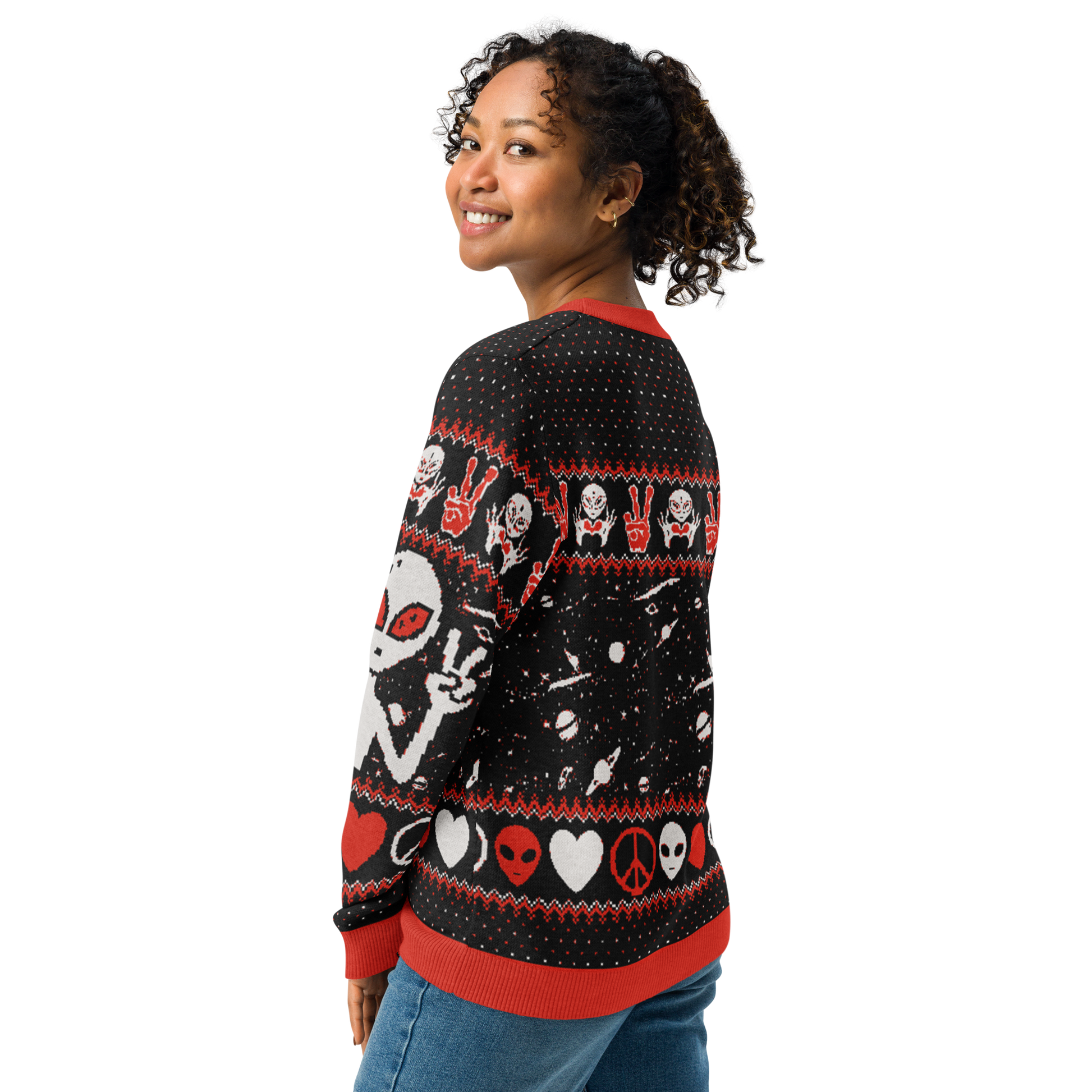 The “Peace” sweater with the “I Come in Peace” sweater are a holiday party home run. Impress your friends and family with a great pair of dirty innuendo sweaters or even your co-workers at the holiday parties.
