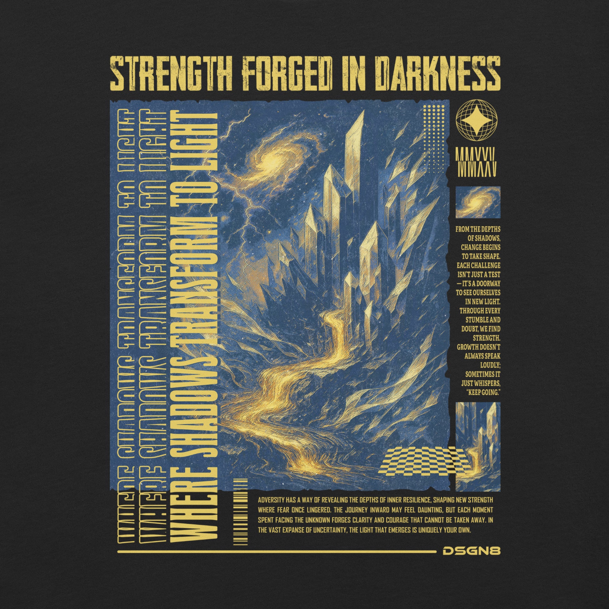 This tee explores the profound journey through the shadows of experience—where hidden fears confront the courage to transform and hope is kindled in adversity. The design honors personal resilience and mental health awareness, offering a symbol for all who strive to rise from struggle and illuminate the darkness within.